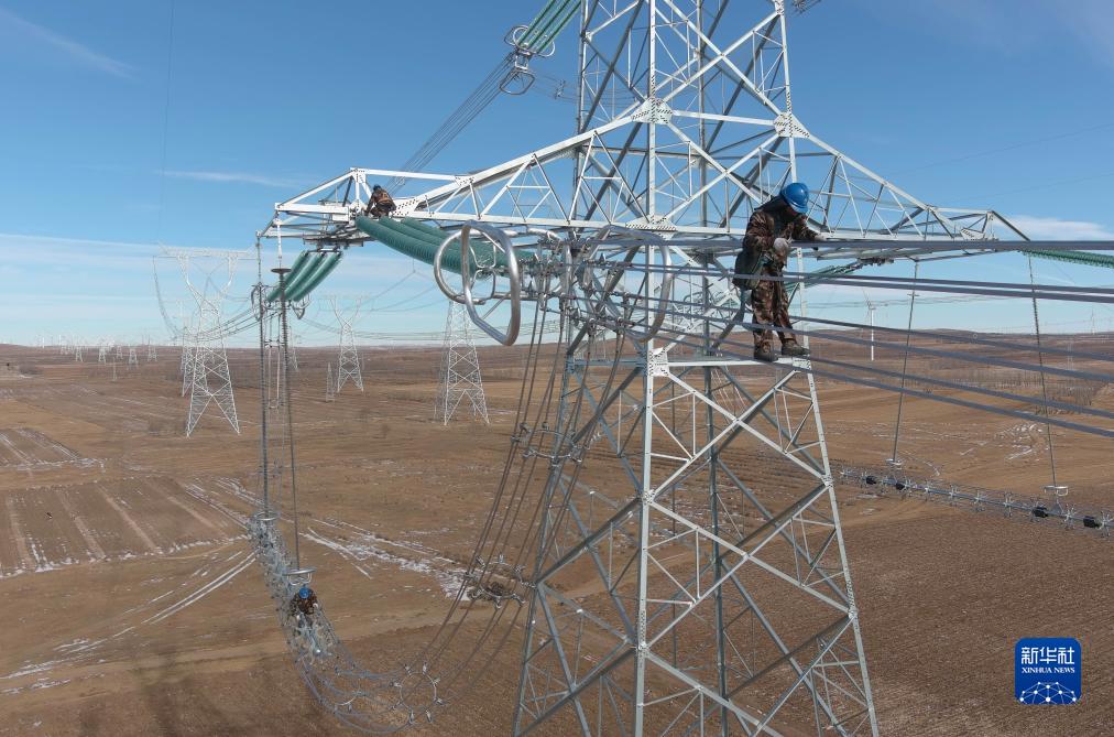 近日,由北京送變電有限公司承建的張北(河北省張家口市張北站)至勝利(內蒙古錫林郭勒盟勝利站)雙回1000千伏交流線路工程冀北段建設進入收尾階段。據介紹,該工程是國家“十四五”規劃的重點項目,投産後,每年將向京津冀地區和山東、江蘇等省市輸送綠色電能約700億千瓦時,進一步增強內蒙古錫盟和河北張家口的風電、光伏等新能源外送能力,提升區域電網保供能力。
