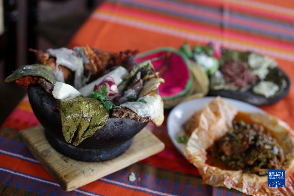 這是在墨西哥墨西哥州拍攝的使用仙人掌等為原材料製作的當地特色食品(8月3日攝)。