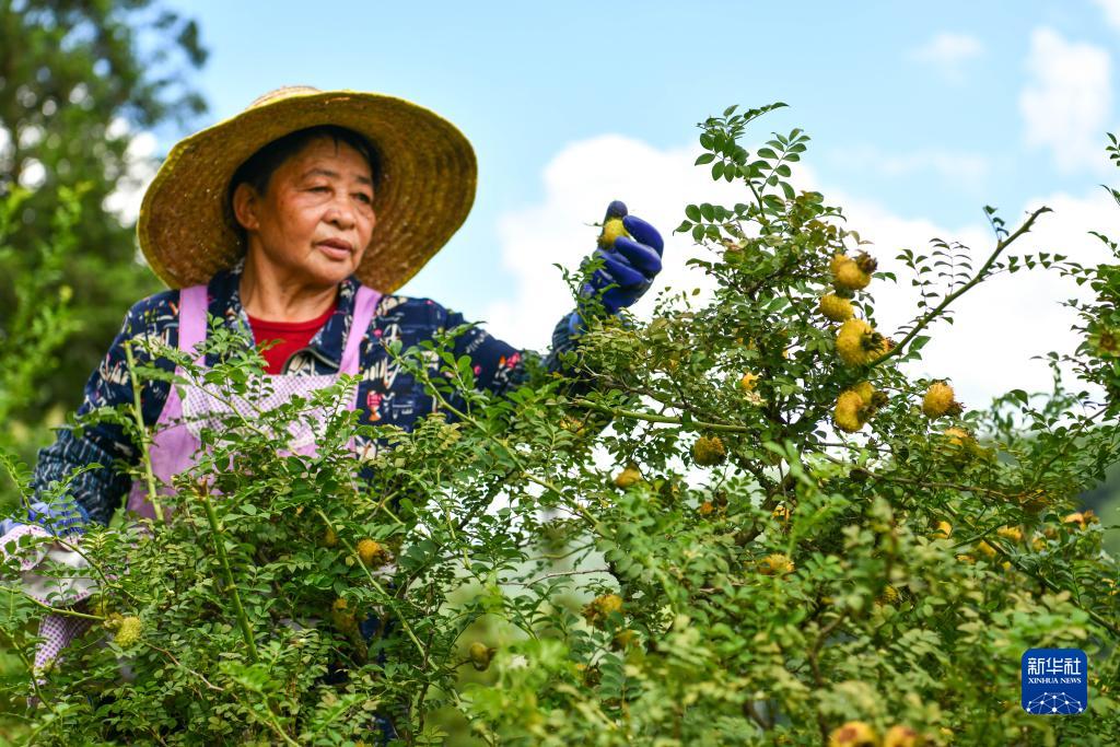 農民在貴州省龍裏縣谷腳鎮高堡村採摘刺梨鮮果(2021年8月18日攝)。