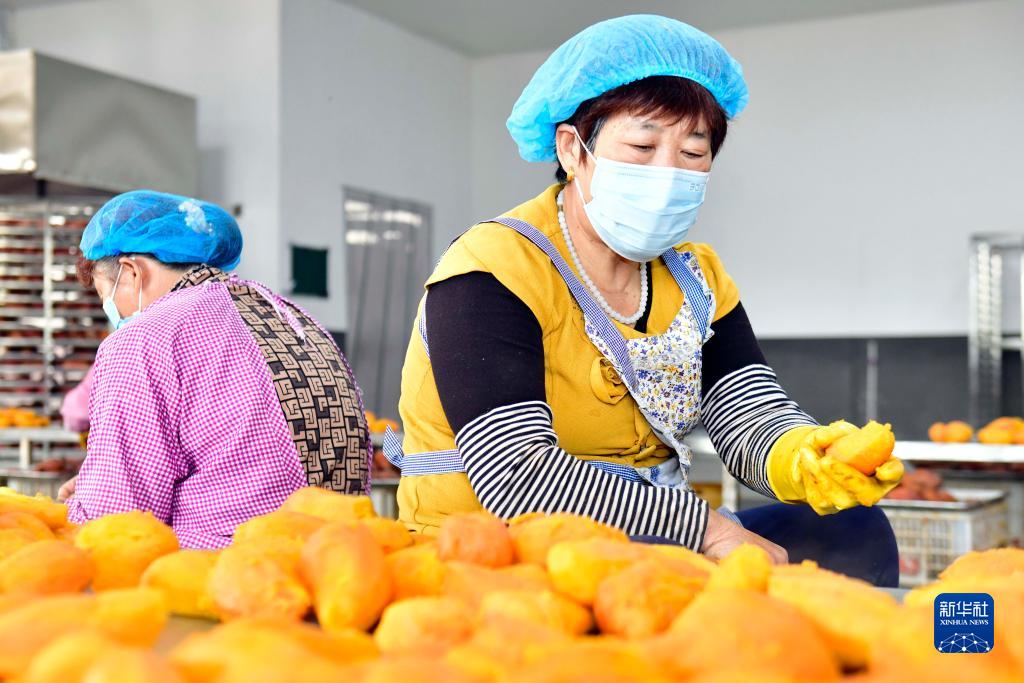 11月11日,在五蓮縣潮河鎮魏家薯幹專業合作社,工作人員在加工薯幹。