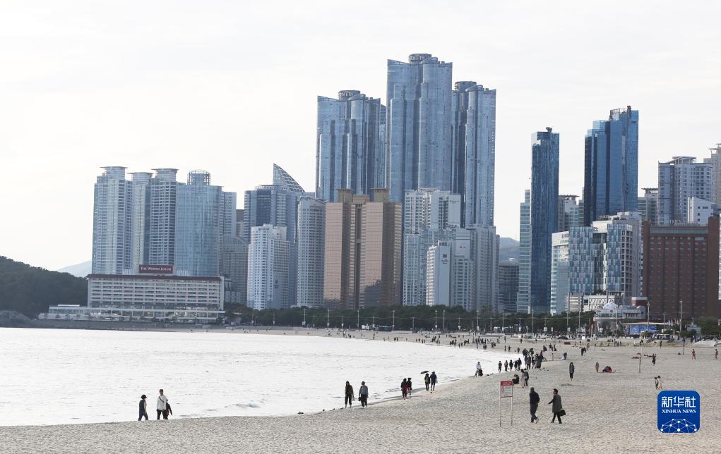 11月10日,人們在韓國釜山市海&&的海灘休閒。
