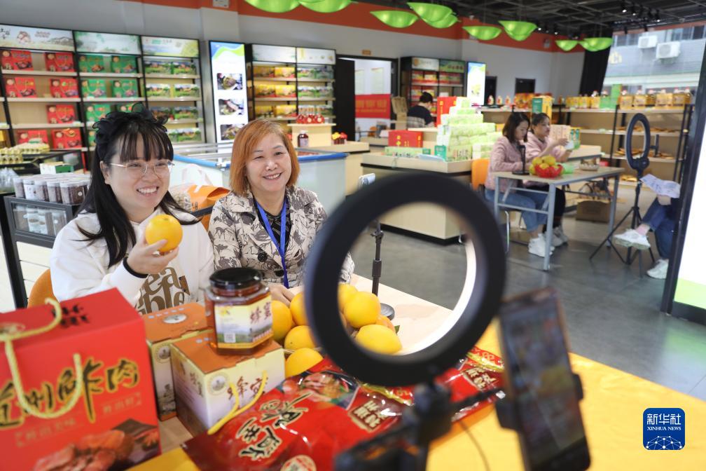 11月11日,在湖南省永州市道縣電子商務孵化中心,主播在網絡平台上推廣當地農特産品。