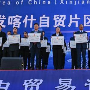 當日,中國(新疆)自由貿易試驗區喀什片區揭牌,並迎來首批35家企業入駐,簽約落地項目資金超過176億元,涵蓋商貿物流、電子信息、新材料、汽車加工等領域。