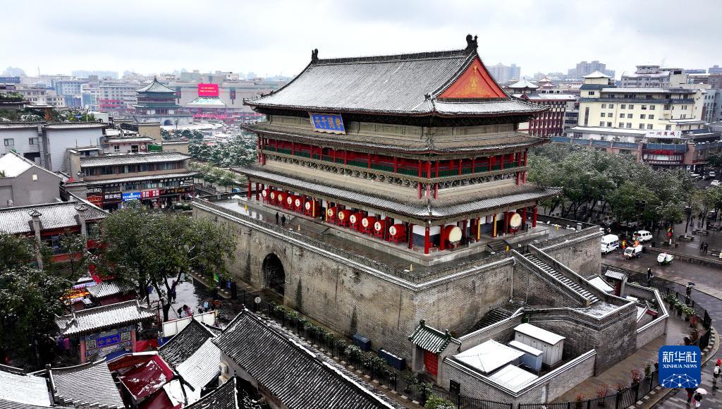 當日,陜西省西安市迎來立冬以來首場降雪,白雪掩映下的古都古樸寧靜。