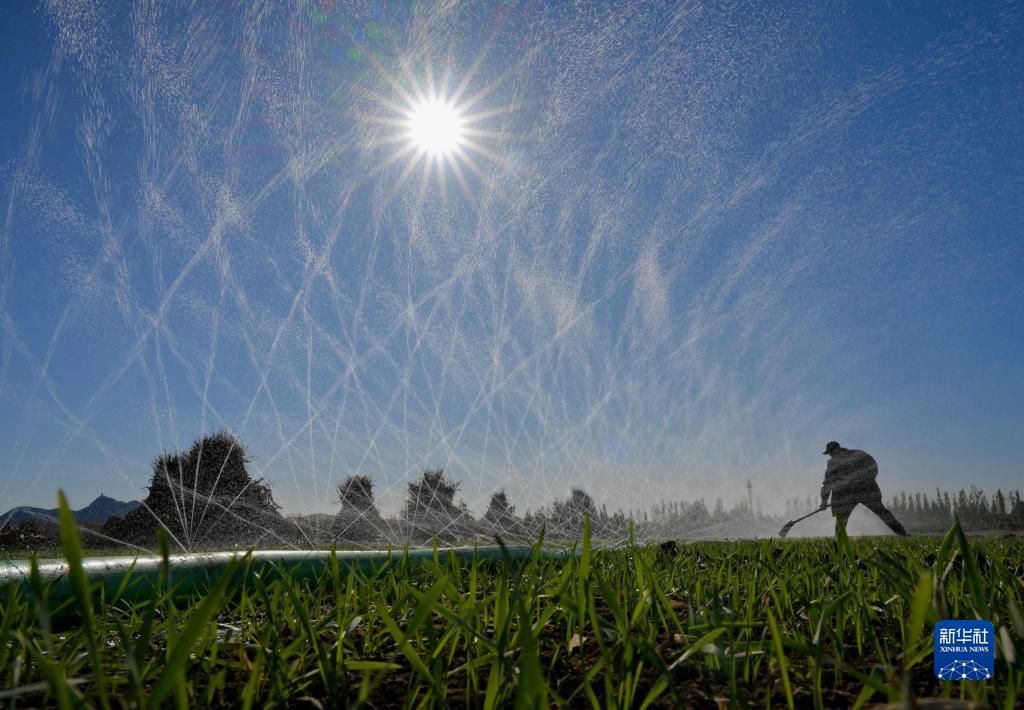 眼下正值冬小麥澆灌封凍水時節,河北省灤州市的農民搶抓農時,採用噴灌、微噴等節水設備給冬小麥澆水,為來年糧食豐收打好基礎。