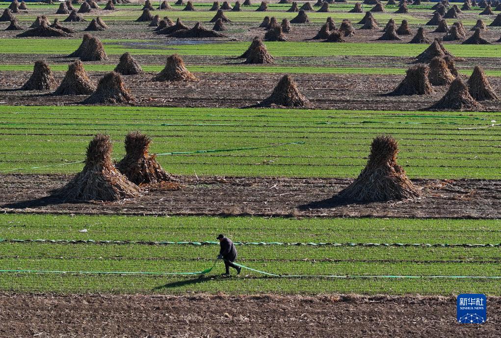 眼下正值冬小麥澆灌封凍水時節,河北省灤州市的農民搶抓農時,採用噴灌、微噴等節水設備給冬小麥澆水,為來年糧食豐收打好基礎。