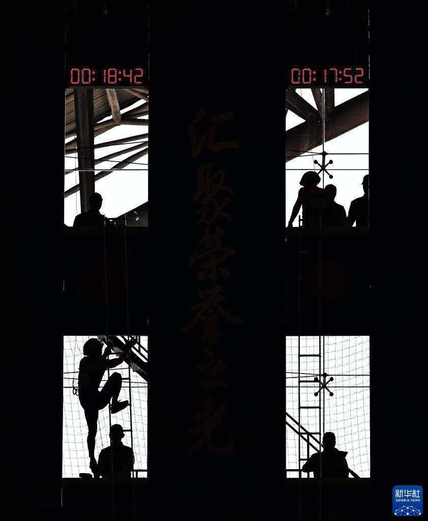11月8日,消防員在攀登挂鉤梯比賽中。當日,第二屆全國消防行業職業技能大賽在江蘇南京開幕。