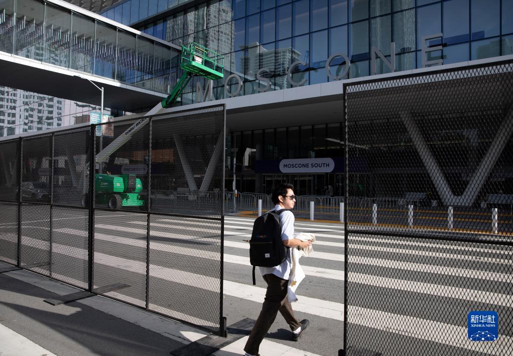 11月10日,在美國舊金山,一名男子走過亞太經合組織會議場地外的金屬圍欄。