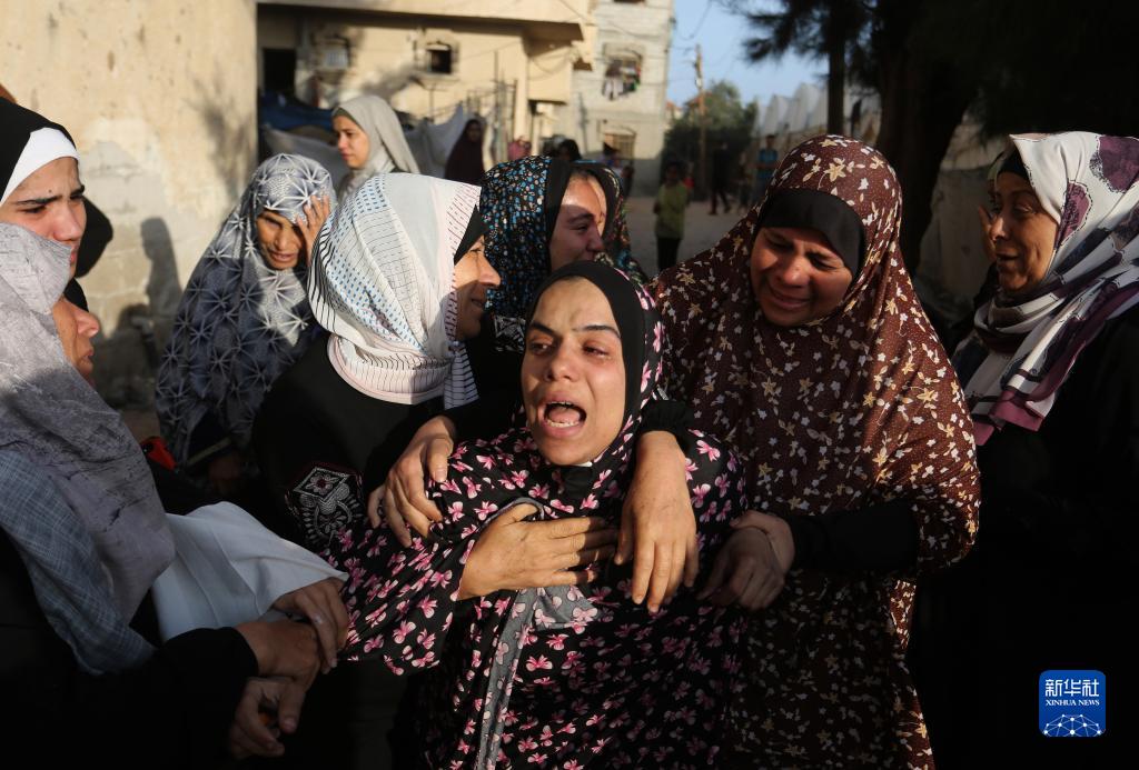 11月11日,在加沙地帶南部城市拉法,人們悼念在衝突中遇難的親人。