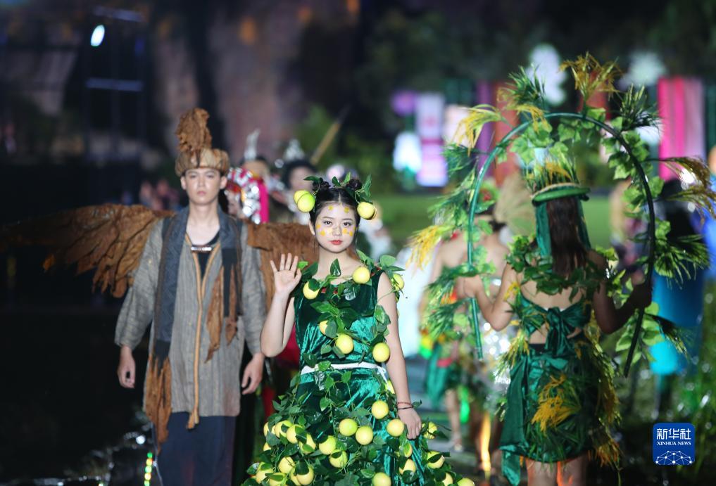當日,海南省五指山市民族時裝“村秀”特別專場活動在五指山市通什鎮小島公園舉辦。由五指山各鄉鎮選出的民族時裝“村秀”代表,以黎族苗族文化、民間技藝等為內容走秀,向人們展現鄉村特色與民族文化的傳承創新。