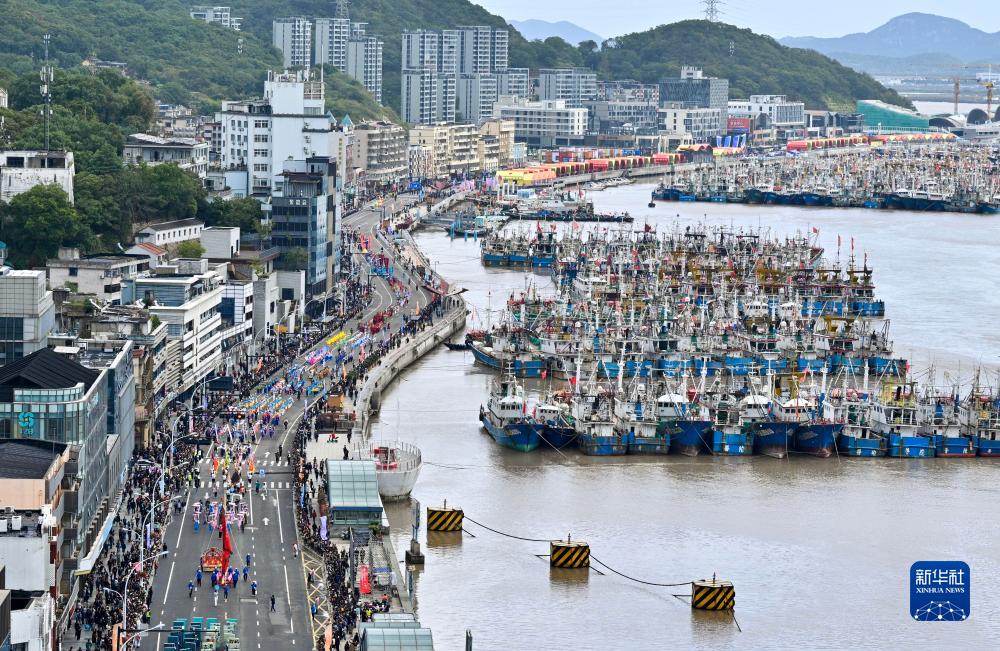 當日,第八屆沈家門漁港民間民俗大會開幕式在浙江省舟山市普陀區沈家門漁港舉行,舟山鑼鼓、漁歌號子等民間藝術方陣和該區各鄉鎮展演節目巡游展示,讓在場市民和游客感受到漁港獨特的氣息與風情。