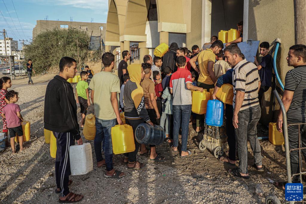 11月11日,人們在加沙地帶南部城市汗尤尼斯排隊打水。