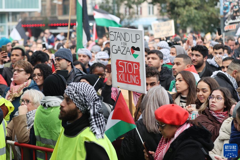 當日,眾多巴勒斯坦支持者在比利時布魯塞爾集會,呼籲盡快實現加沙停火 。