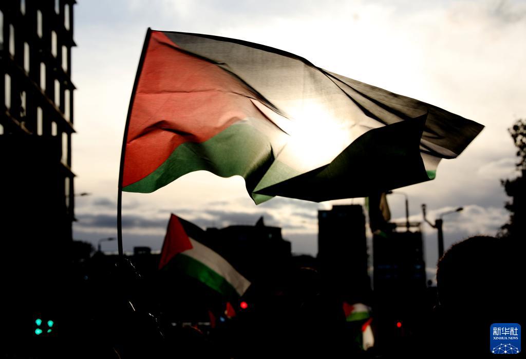 當日,數十萬民眾在英國倫敦參加聲援巴勒斯坦的游行集會,呼籲盡快實現加沙停火。