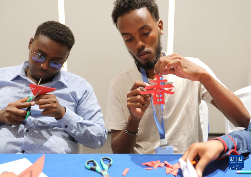 2022年9月18日,在吉布提首都吉布提市,學員們在中國招商局集團與吉布提政府合作投資開發的非洲青年創新創業中心內學習剪紙。