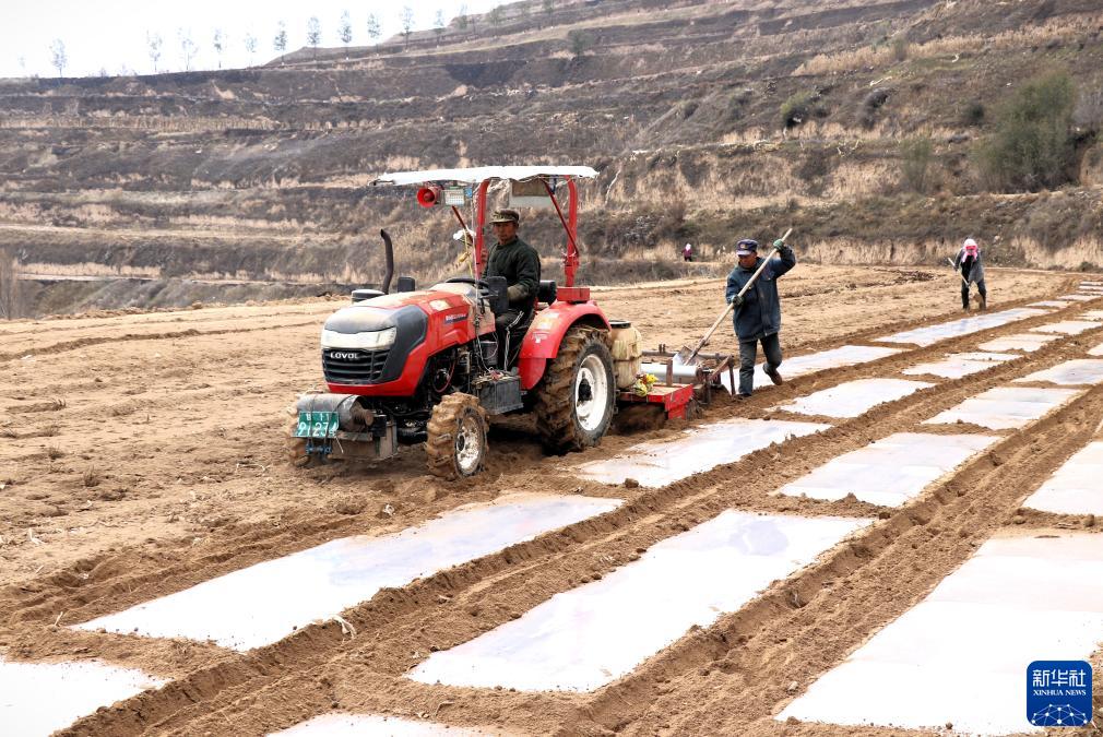 連日來,在位於黃土高原的甘肅省平涼市靜寧縣,農戶抓住秋冬季節降水較多、土壤墑情較好、地面尚未封凍的有利時機,對耕地進行覆膜作業,為來年春播打下基礎。