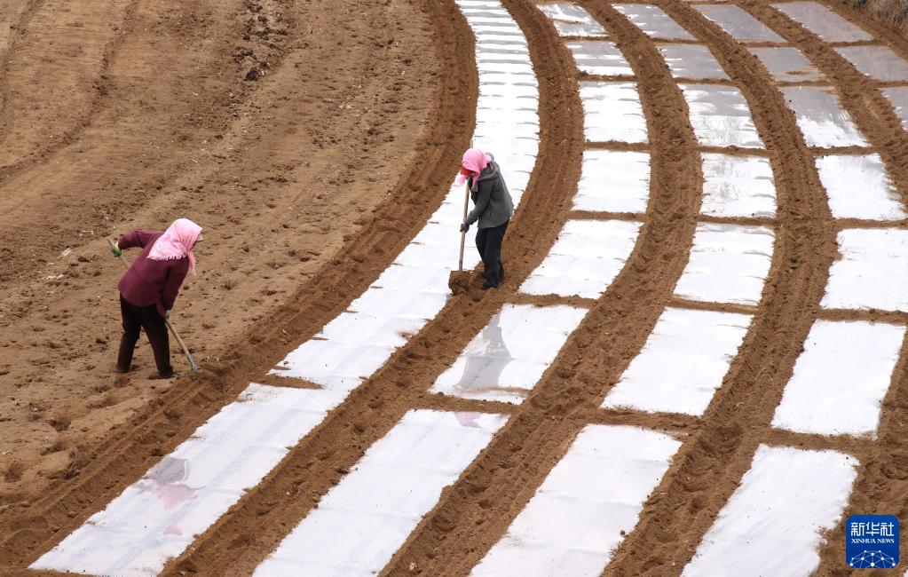 連日來,在位於黃土高原的甘肅省平涼市靜寧縣,農戶抓住秋冬季節降水較多、土壤墑情較好、地面尚未封凍的有利時機,對耕地進行覆膜作業,為來年春播打下基礎。