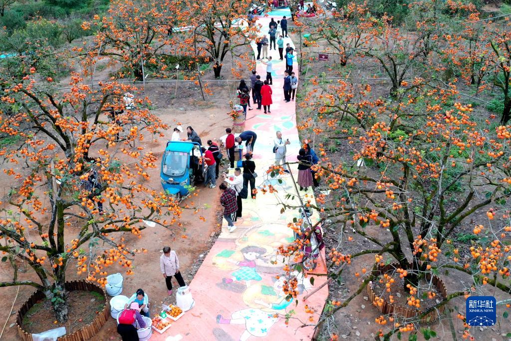 初冬時節,福建省寧德市古田縣利洋村柿子園的枝頭挂滿了橘紅的柿子,給這個小山村增添了亮麗的色彩,吸引游客前來游玩。