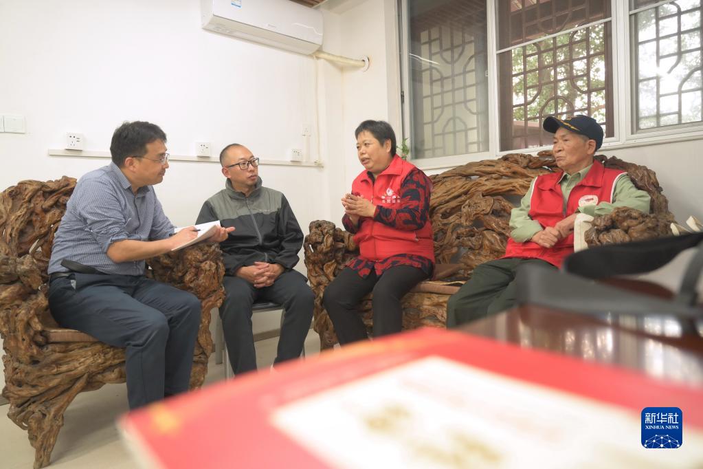 11月12日,福州市園林中心、西湖公園管理處管理人員在福州西湖公園向“市民園長”陳素芬(右二)了解群眾對西湖公園的意見和建議。