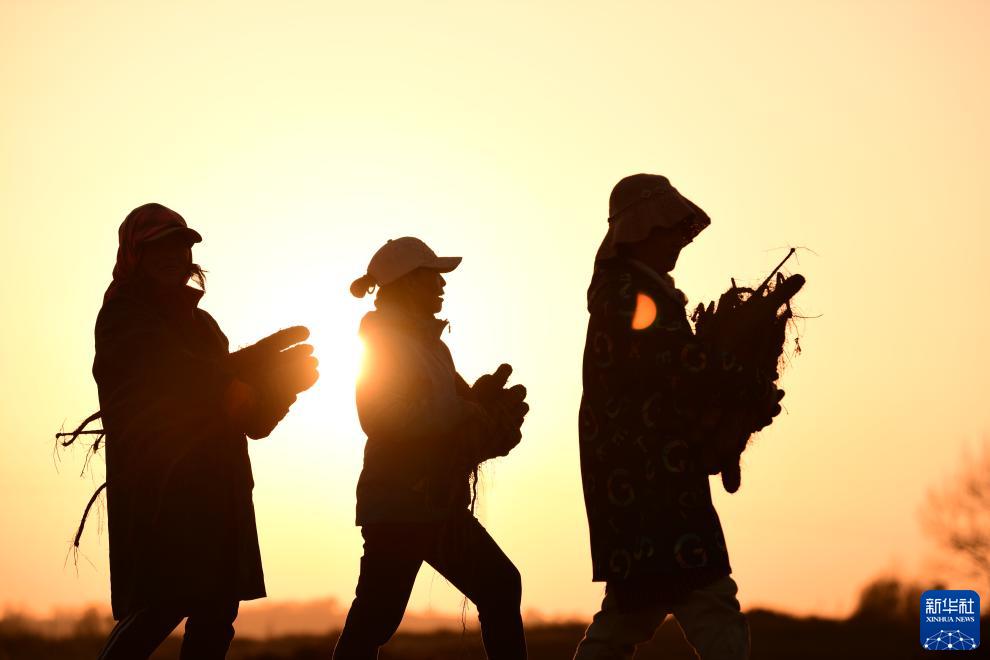 11月12日,在鄂托克前旗城川鎮章昂希裏村的沙地農田,農民采收白玉山藥。