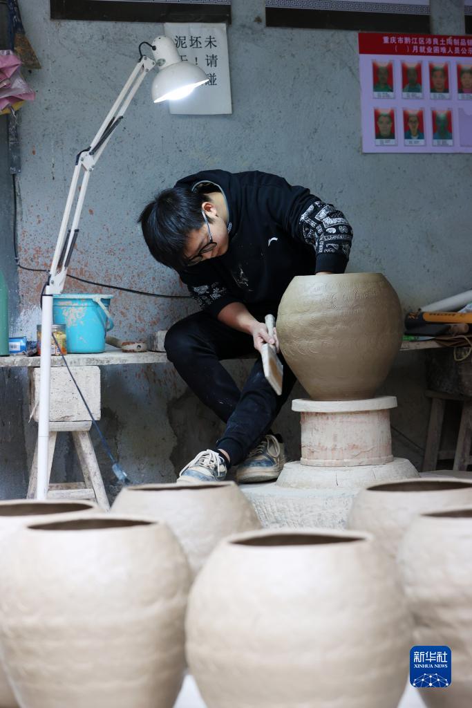 近年來,重慶市黔江區把非遺項目濯水石雞坨土陶製作技藝與文化、旅游産業相結合,建起非遺傳承基地和非遺工坊,由非遺傳承人對脫貧戶、大學生等進行技能培訓,並將掌握製作技藝的人員招聘到土陶製作相關企業就業,推動非遺技藝的傳承,助推鄉村振興。
