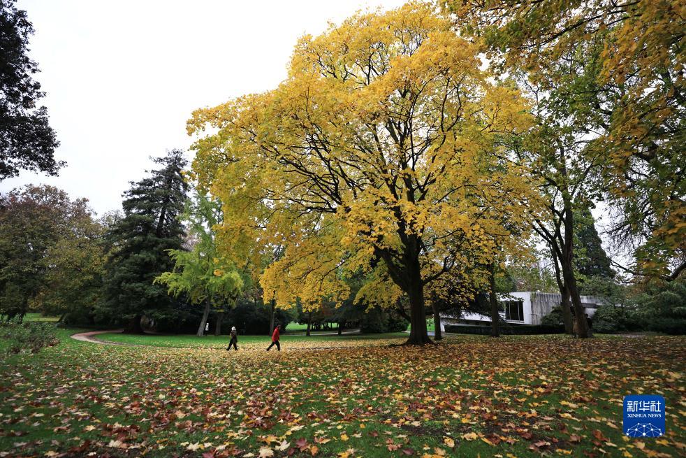 11月12日,人們走在法國巴黎蒙蘇裏公園內。