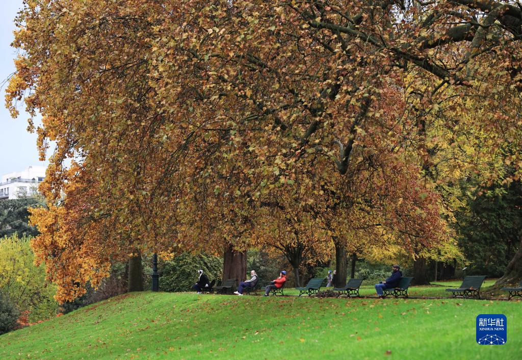 11月12日,人們在法國巴黎蒙蘇裏公園欣賞秋色。