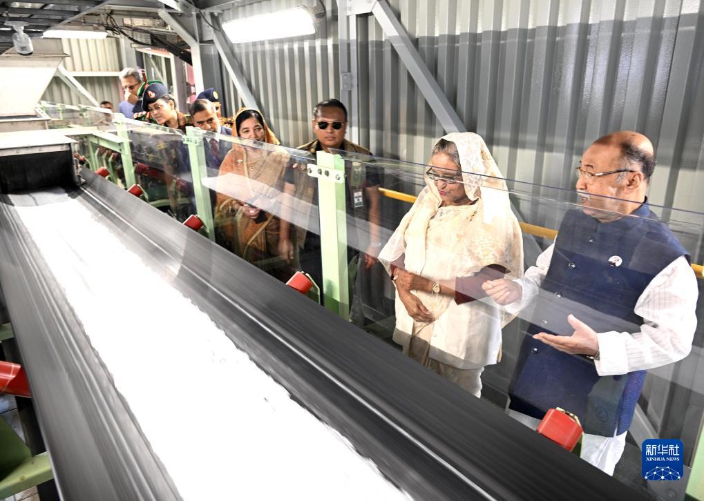 11月12日,孟加拉國總理謝赫·哈西娜(右二)在位於該國諾爾辛迪的古拉紹-布拉什化肥廠參觀。