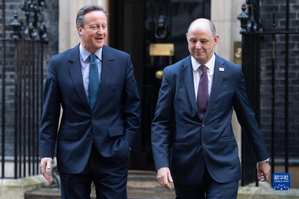 11月13日,在英國倫敦,新任外交大臣戴維·卡梅倫(左)走出唐寧街10號首相府。