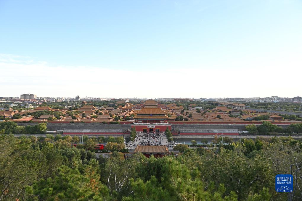 從景山上拍攝的故宮(10月19日攝)。始建於1406年的故宮是世界上現存規模最大、最完整的古代木構宮殿建築群,位於北京中軸線的中心。1987年聯合國教科文組織將其列入世界文化遺産名錄。