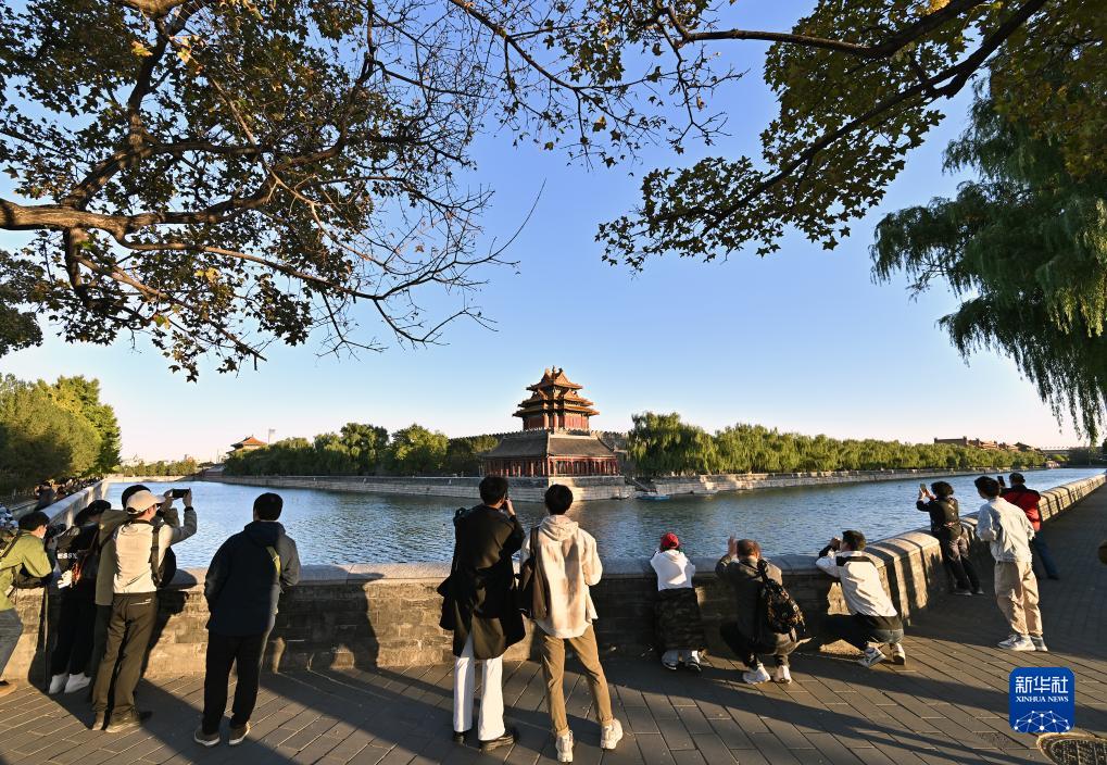 秋日北京,天高雲淡。北京中軸線上的古老的文物建築與色彩斑斕的秋葉相互映襯,美不勝收。