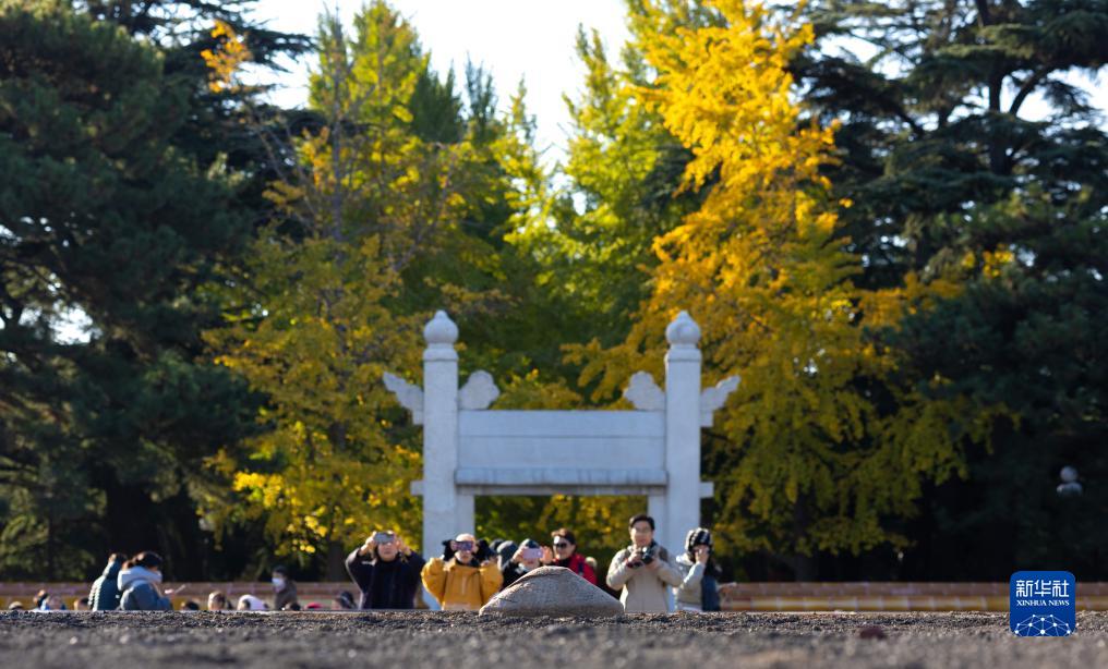 游客在北京中山公園拍攝社稷壇(11月7日攝)。社稷壇是皇帝祭祀土神和谷神的地方,也是皇權王土和國家收成的象徵,1928年改名為中山公園。