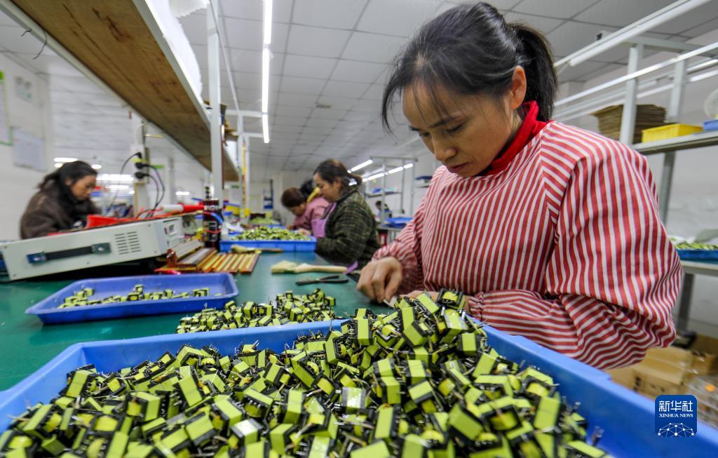11月14日,工人在施秉縣一家電子企業生産車間工作。