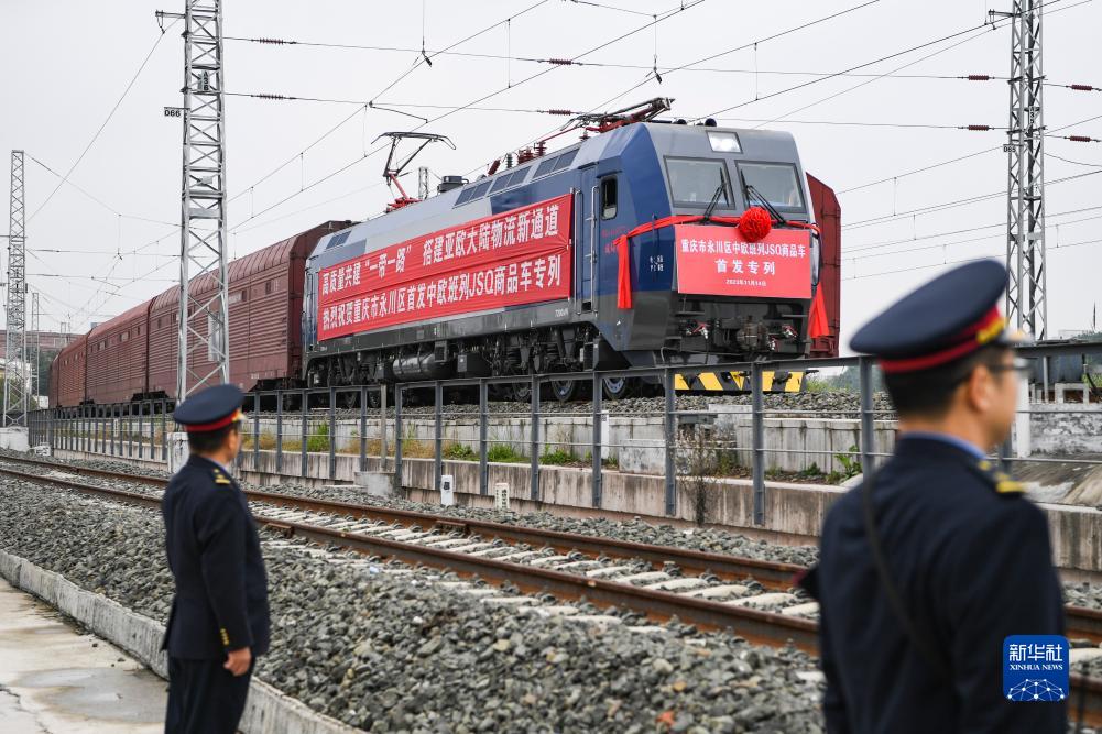 11月14日,重慶市永川區首趟中歐班列JSQ商品車專列從永川欄杆灘站發車。