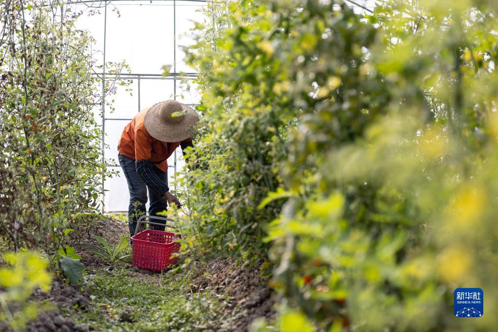 11月14日,浙江省湖州市吳興區八里店鎮一未來農場,農戶在加強管護番茄種苗。