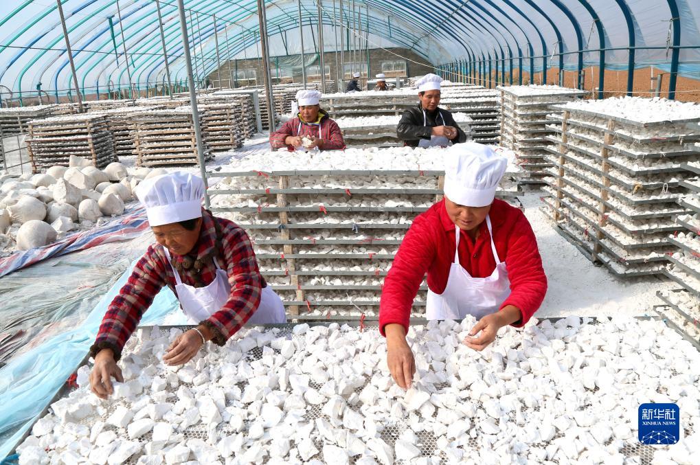 11月13日,河南省洛陽市汝陽縣內埠鎮羅洼村侯氏薯業種植專業合作社農民忙着晾曬紅薯澱粉。