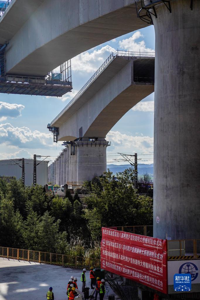 渝昆高鐵兩座特大橋連續梁成功轉體