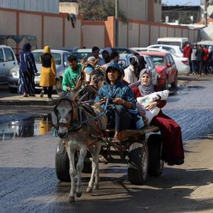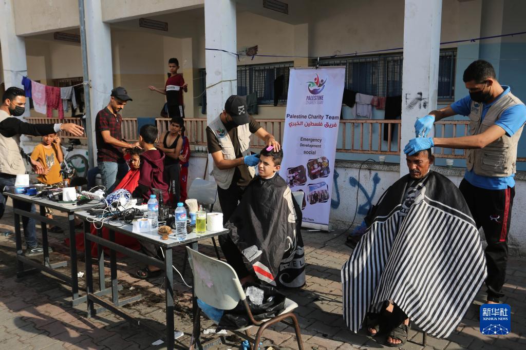 11月14日,在加沙地帶南部城市拉法,志願者為流離失所的巴勒斯坦人理髮。
