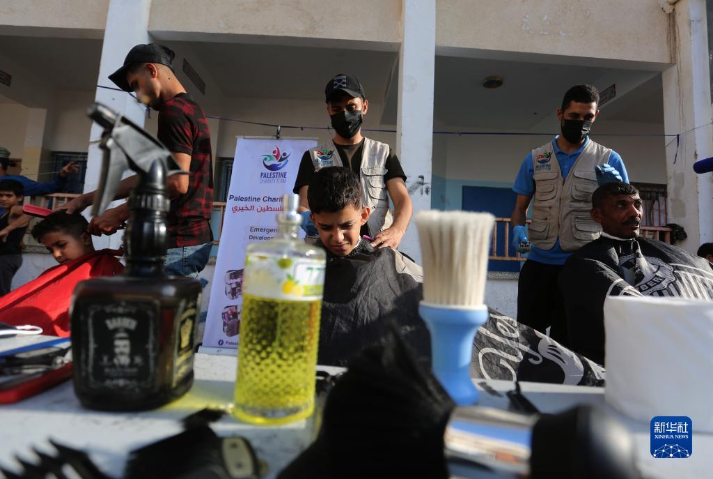 11月14日,在加沙地帶南部城市拉法,志願者為流離失所的巴勒斯坦人理髮。