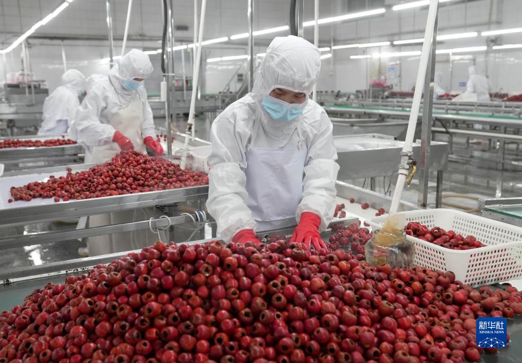 11月14日,工人在河北省遵化市一家食品企業的山楂罐頭生産車間工作。
