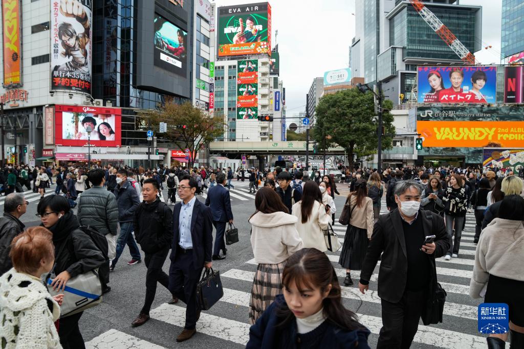 11月15日,人們走過日本東京澀谷車站前的十字路口。