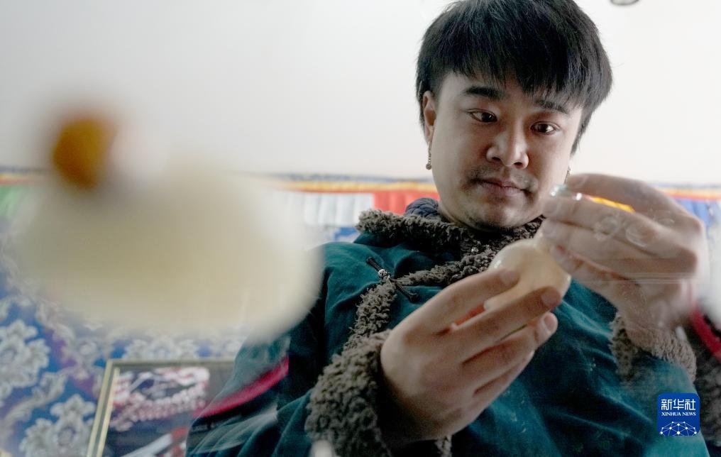 1994年出生於內蒙古烏拉特前旗的齊天賜,天生患有肢體殘疾。雖然命運坎坷,但他不屈不撓。為了學習蒙古族傳統手工銀飾技藝,他先後跟隨多名非遺傳承人學習熔銀、鍛打、焊接、清洗等銀飾加工工藝。