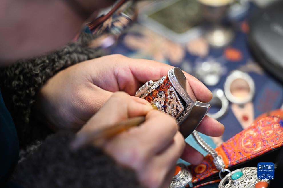 1994年出生於內蒙古烏拉特前旗的齊天賜,天生患有肢體殘疾。雖然命運坎坷,但他不屈不撓。為了學習蒙古族傳統手工銀飾技藝,他先後跟隨多名非遺傳承人學習熔銀、鍛打、焊接、清洗等銀飾加工工藝。