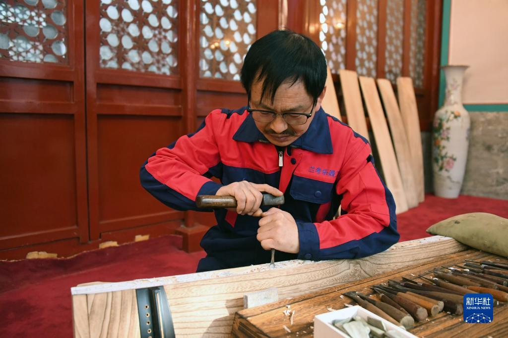 11月15日,樂器製作師在活動中展示“蘭考古箏”製作。