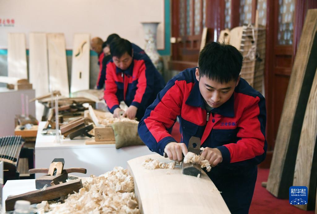 11月15日,樂器製作師在活動中展示“蘭考古箏”製作。