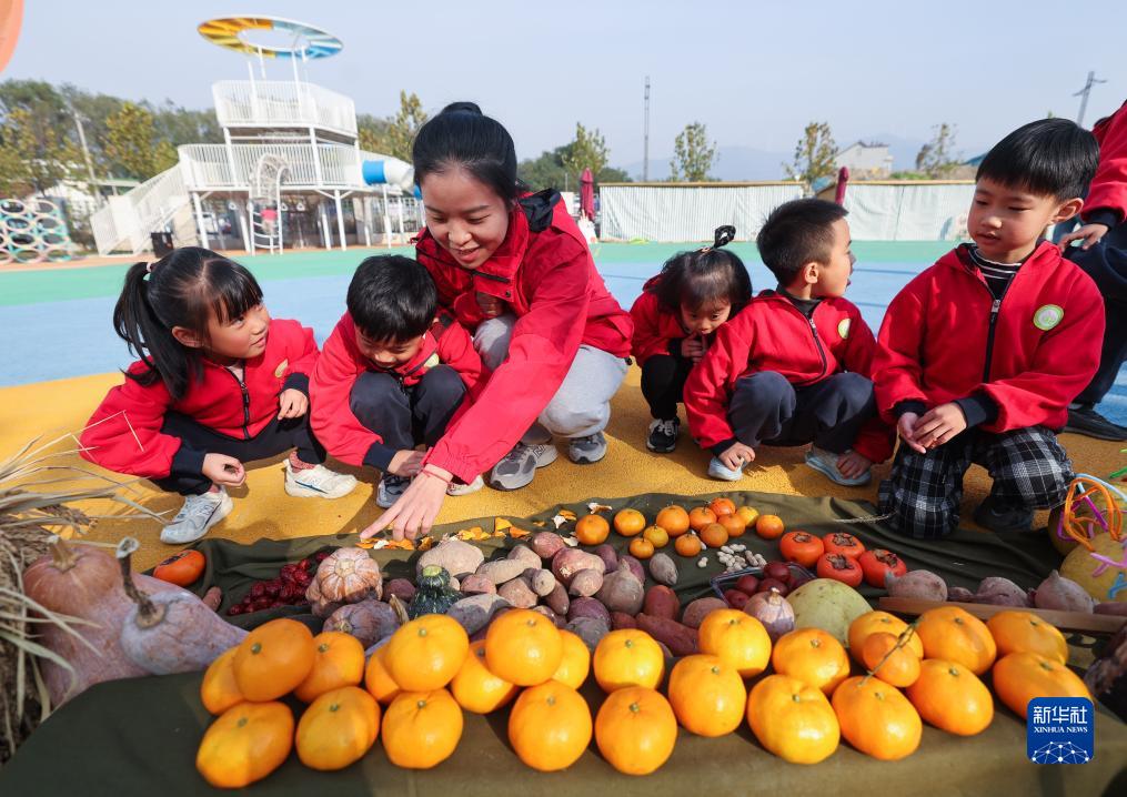 當日,浙江省湖州市長興縣李家巷鎮中心幼兒園開展“冬日校園 樂享豐收”校園豐收節主題活動。孩子們在老師的帶領下參觀豐收節農作物展、手工藝品展,還參加挑擔子、運蘿蔔、接力送玉米等趣味運動,學習知識、鍛煉身體,感受豐收帶來的喜悅。