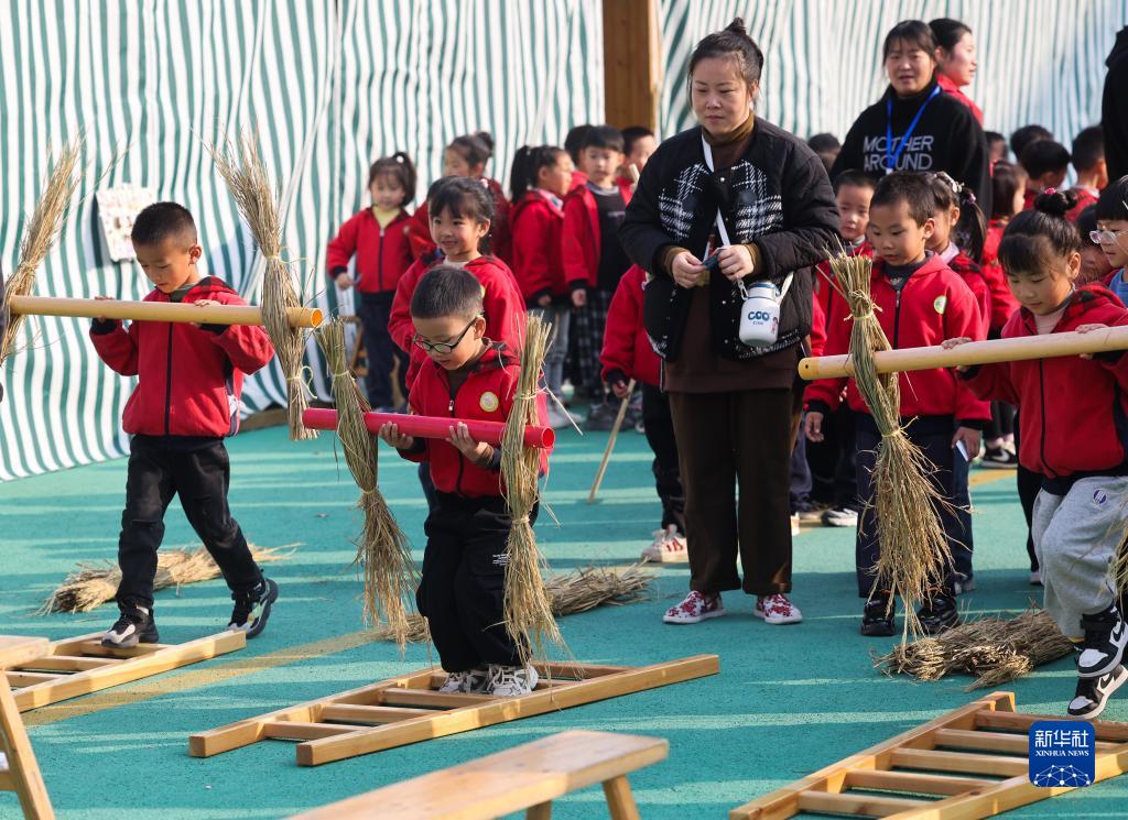 當日,浙江省湖州市長興縣李家巷鎮中心幼兒園開展“冬日校園 樂享豐收”校園豐收節主題活動。孩子們在老師的帶領下參觀豐收節農作物展、手工藝品展,還參加挑擔子、運蘿蔔、接力送玉米等趣味運動,學習知識、鍛煉身體,感受豐收帶來的喜悅。