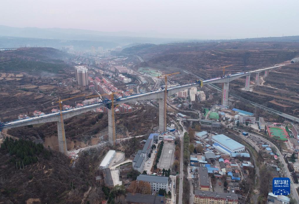 當日,由中國鐵建大橋工程局承建的西(安)延(安)高鐵王家河特大橋主橋順利合龍。王家河特大橋位於陜西省銅川市王益區境內,全長1066.7米,是西延高鐵全線跨度最大、高度最高的橋梁。