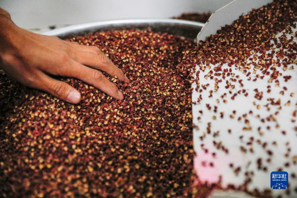 11月15日,在舟曲縣電子商務公共服務中心,工作人員在整理篩選好的花椒。