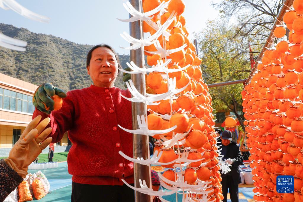 11月14日,在舟曲縣立節鎮傑迪村,村民在晾曬柿子。